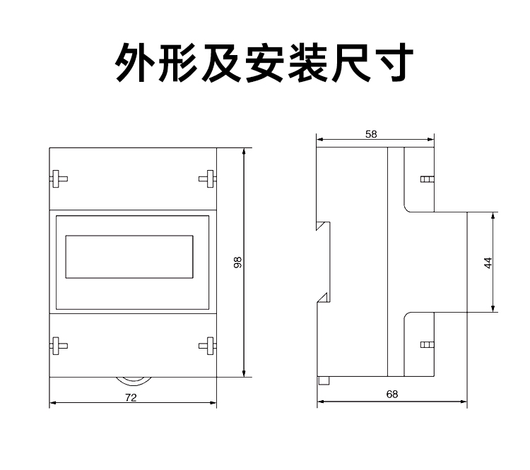 三相4P導(dǎo)軌式電表式的尺寸