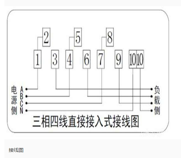 三相預(yù)付費(fèi)電表直接式的接線比較簡單,編號(hào)從1到10,有的朋友只看到底部的7個(gè)接線柱,其實(shí)還有2、5、8三個(gè)接線柱,只不過這三個(gè)接線柱和147用連接片短接了,所以不需要再接線。這種直接式的三相四線電表的接線順序是:147接三相電源的進(jìn)線,369接出線,最后的10接進(jìn)出的零線。