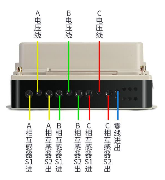 注意147和258之間沒有連接片,147分別接三個(gè)互感器的S1端,369接互感器的S2端,ABC三條火線從互感器的P1面穿過,三個(gè)互感器的S2連一起接地。