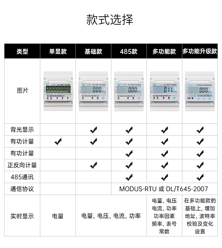 5.顯示功能 :采用寬溫大液晶方式顯示各類信息;電能量顯示位數為6位整數,2位小數,具有參數自動輪顯功能。