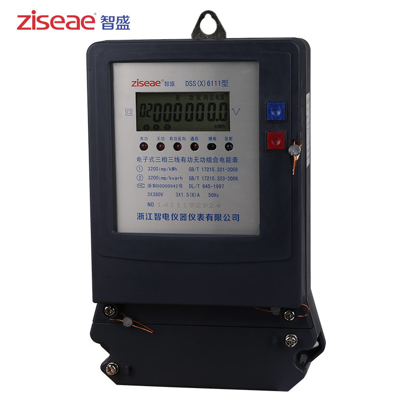 DTS(X)6111、DSS(X)6111型三相電子式有功無功組合電能表(以下簡稱電能表),是為了適應電網(wǎng)改造設計開發(fā)的有功、無功組合式電能表。它具有較高的準確度和可行性。產(chǎn)品制造標準符合GB/T17215.321-2008《1級和2級靜止式交流有功電能表》、GB/T17215.323-2008、DL/T614-1997《多功能電能表》、DL/T645-1997《多功能電能表通信規(guī)約》等電力行業(yè)標準對三相靜止式電能表全部技術要求,是對需要進行無功電量考核的企業(yè)、變電站或電廠理想的選擇,亦適合輸配電或配網(wǎng)自動化用表。本產(chǎn)品可供計量參比頻率為50Hz電網(wǎng)中的三相交流有功和無功電能,并能進行正、反向電能計量和紅外及RS485通訊功能。其特點是精度高、可靠性好、寬負荷、低功耗、誤差曲線平直、抗干擾能力強。