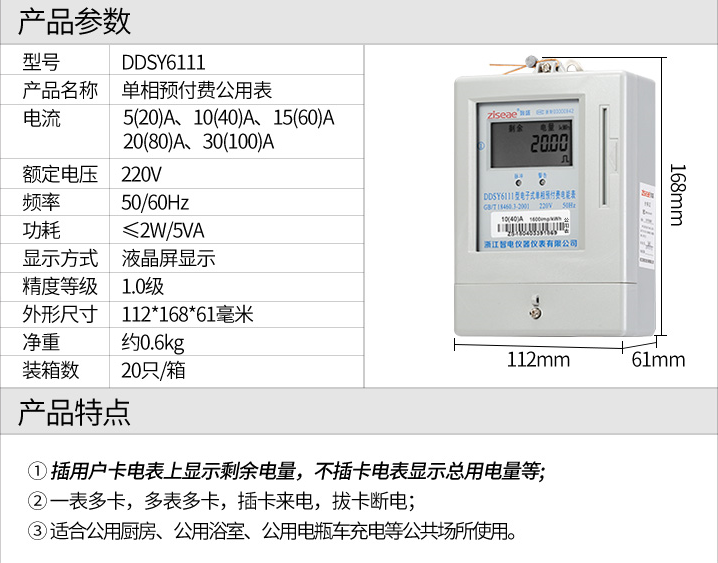DDSY6111單相預付費公用電表(IC卡插卡式電能表)