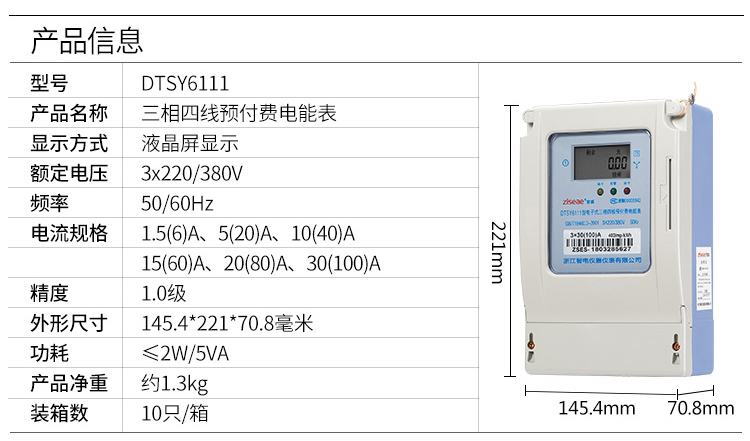 DTSY6111三相四線預付費電表(1代物業版)